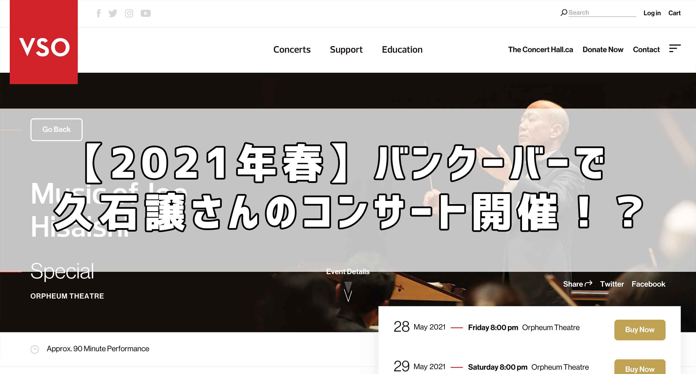 今回は「【2021年春】バンクーバーで久石譲さんのコンサート開催!?」について紹介をしました。